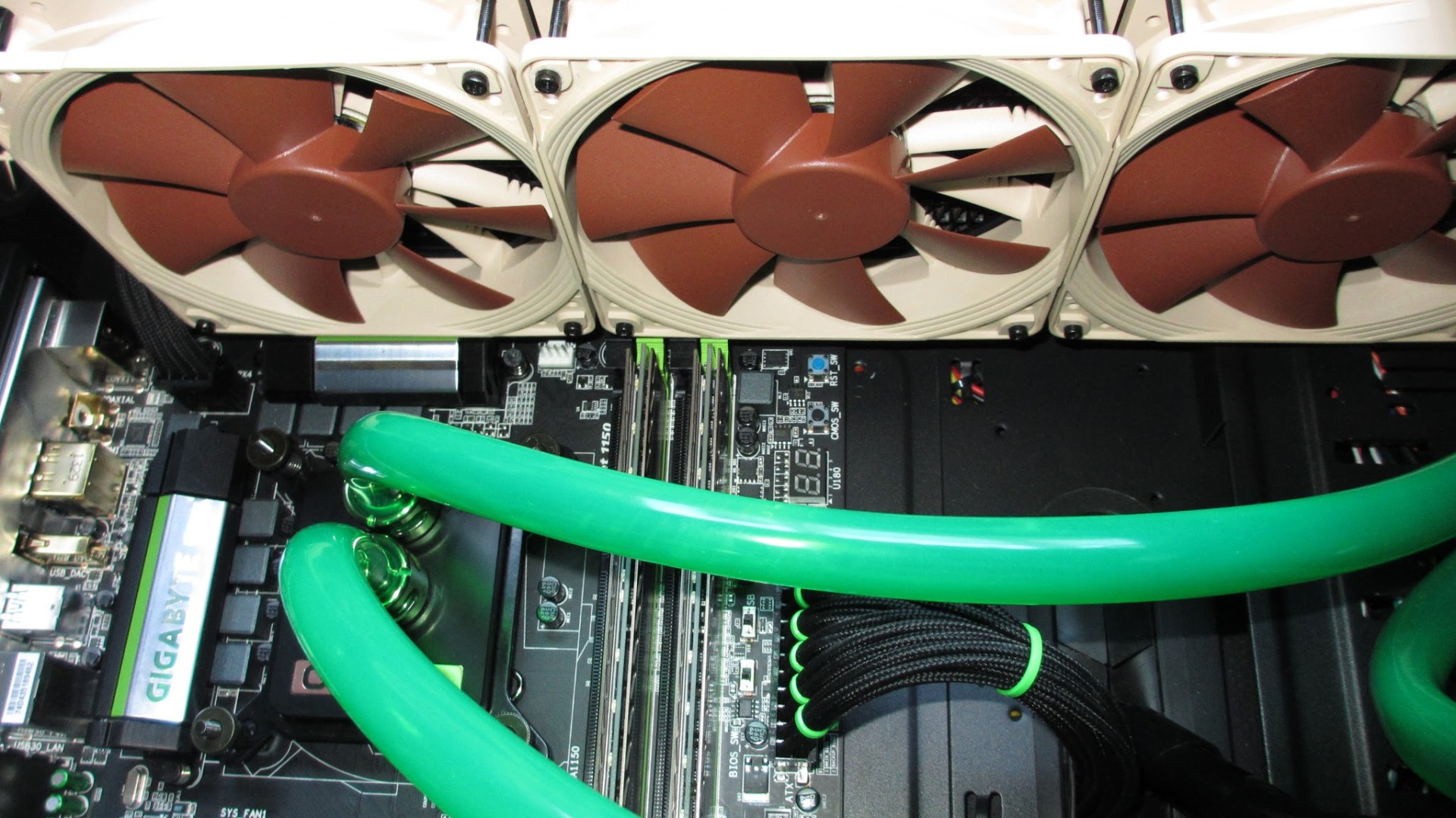 Srovnatelnou zátěž nyní uchladím s ventilátory na 900 otáček, což je v podání kvalitní značky jako Noctua absolutně neslyšitelné. Veškeré odpadní teplo jde ihned ven ze skříně, a to včetně tepla z grafické karty, protože používám referenční chladič. Mnohé asi zarazí kombinace absolutně tichých ventilátorů, vodního chlazení a referenční grafické karty, ale já hluk při hraní neřeším, protože buď mám sluchátka, nebo zapnuté reproduktory na průměrnou hlasitost. To vše podtrhuje kvalita Nvidia chladiče, který při hraní opravdu neruší a v IDLE je absolutně tichý. V IDLE jdou z počítače pouze 2 zvuky a to z absolutně ztlumené pumpy a z pevných disků. Samotná pumpa je velice tichá, zato disky nejsou, což jsem zjistil až po instalaci vodníka. Tohle hodlám řešit v nejbližších týdnech.