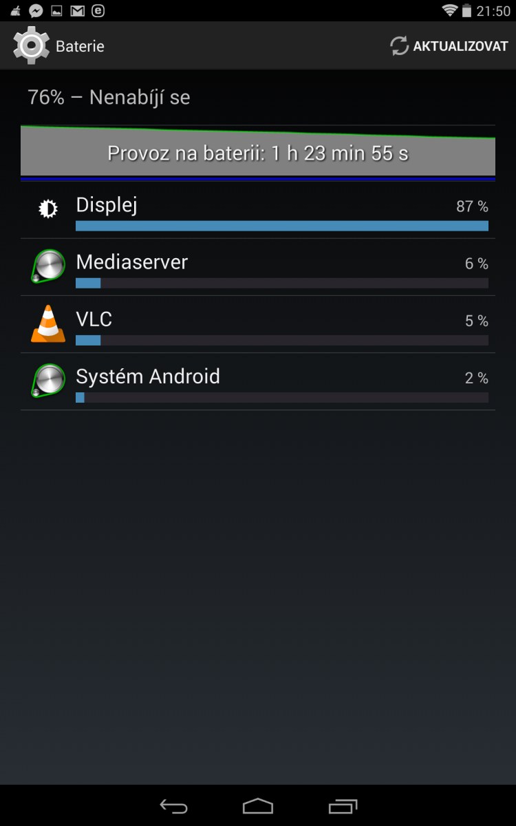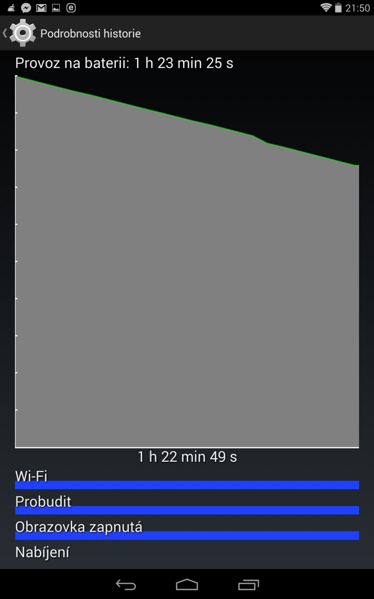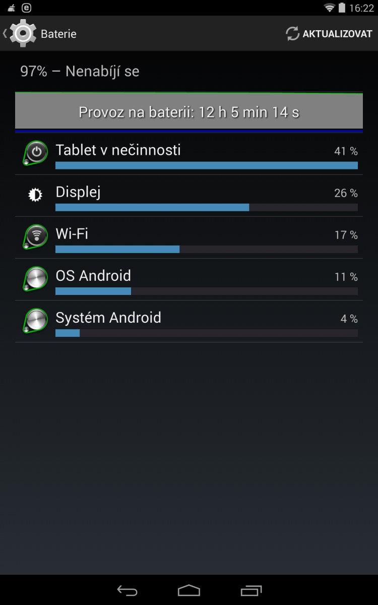 Jak vidíte ikdyž byla Wi-Fi aktivní, tak 12 hodin si tablet řekl o 3% baterie. Z tohoto pohledu je to v pořádku na připojené Wi-Fi síti.