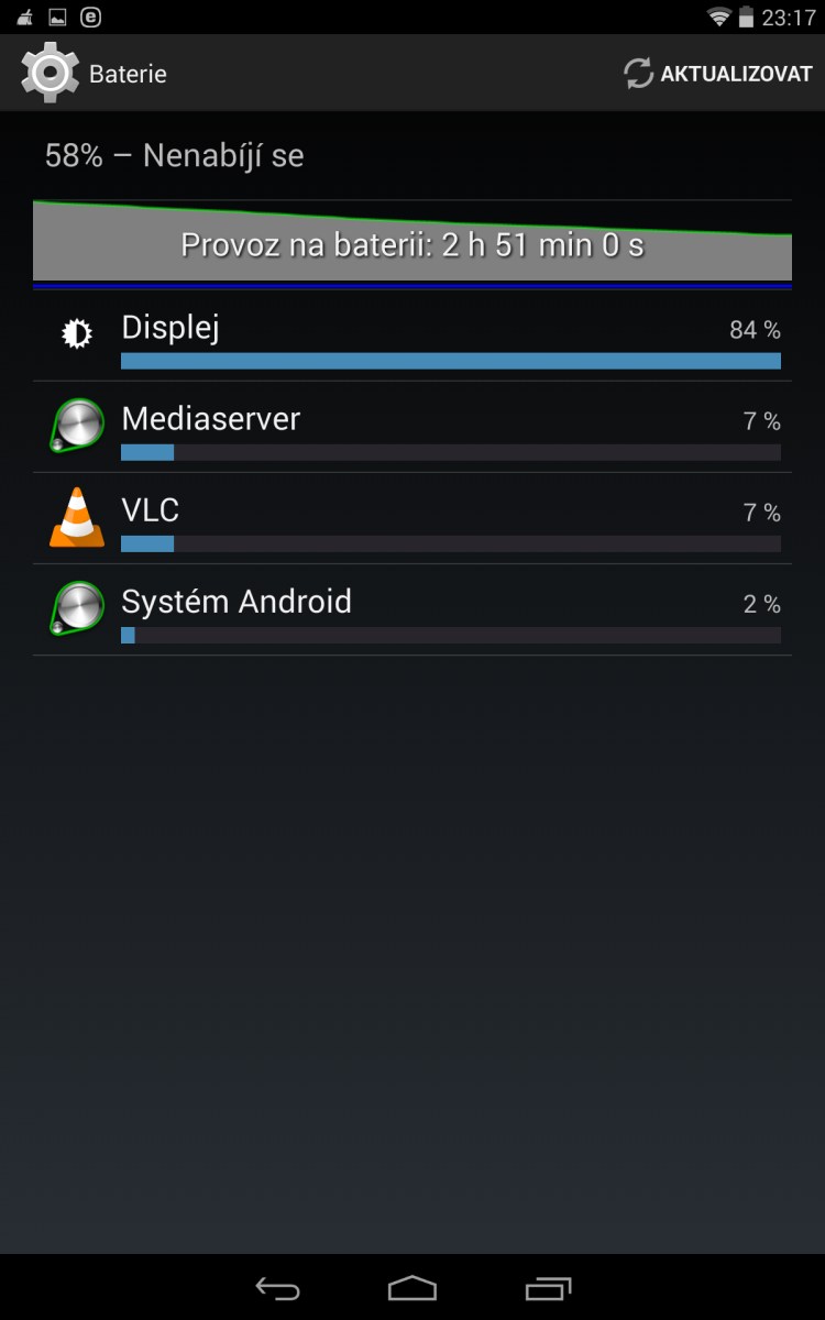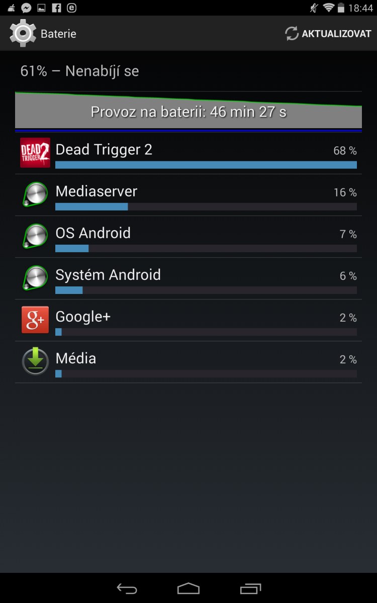 Tablet nám bohužel neumožní celý den na něm hrát a proto si zde ukážeme pár "nudných" dat o praktickém využití a náročnost na baterii tabletu.